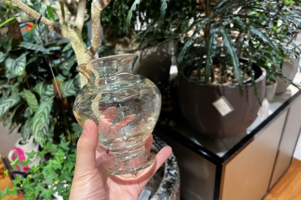このガラスを、綺麗にして粉々に粉砕して小牧さんにお渡しして、今回素敵な花器にしていただきました。