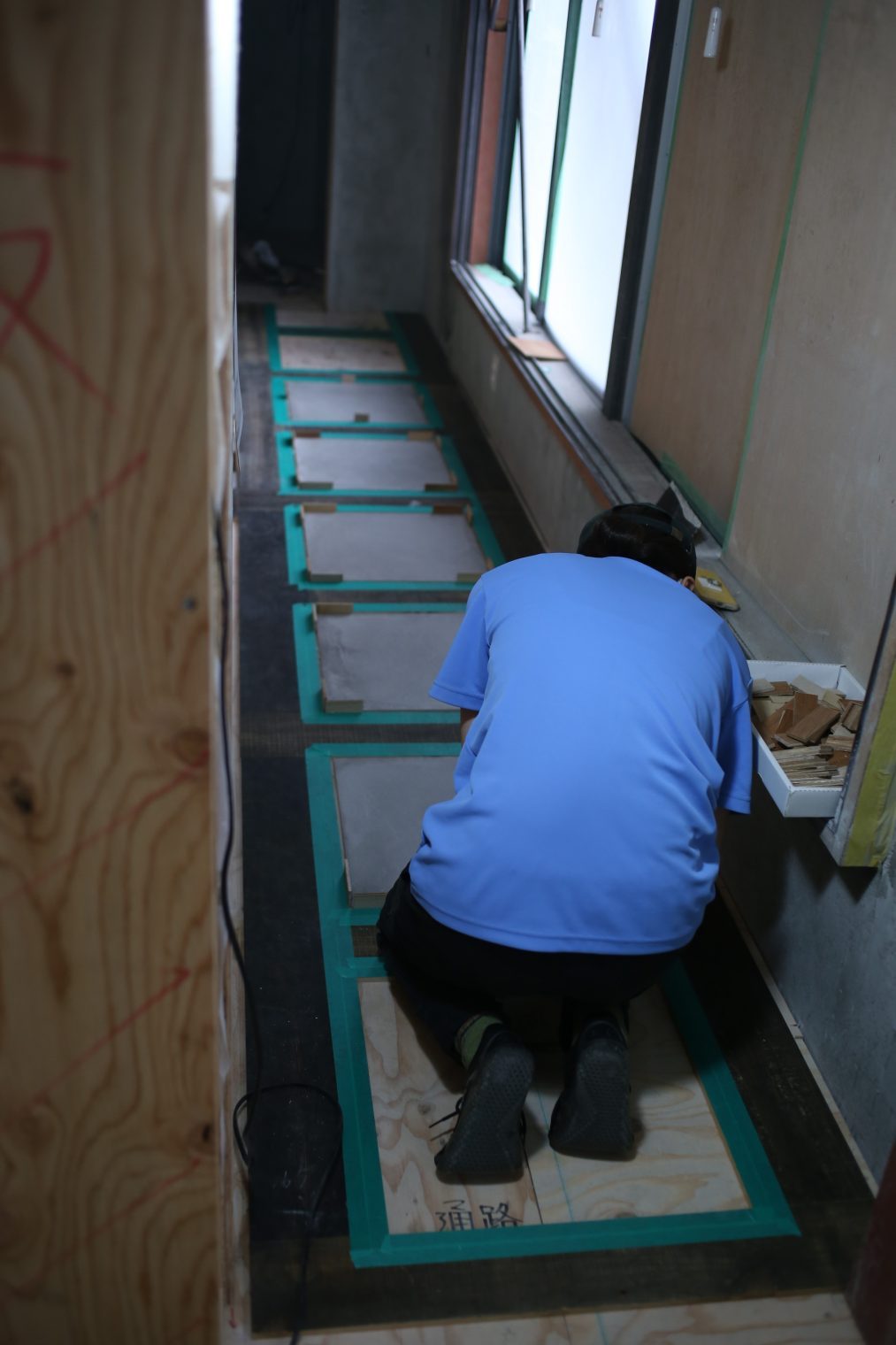 まず紹介するのが、洗面所につながる廊下の床の仕上げです。