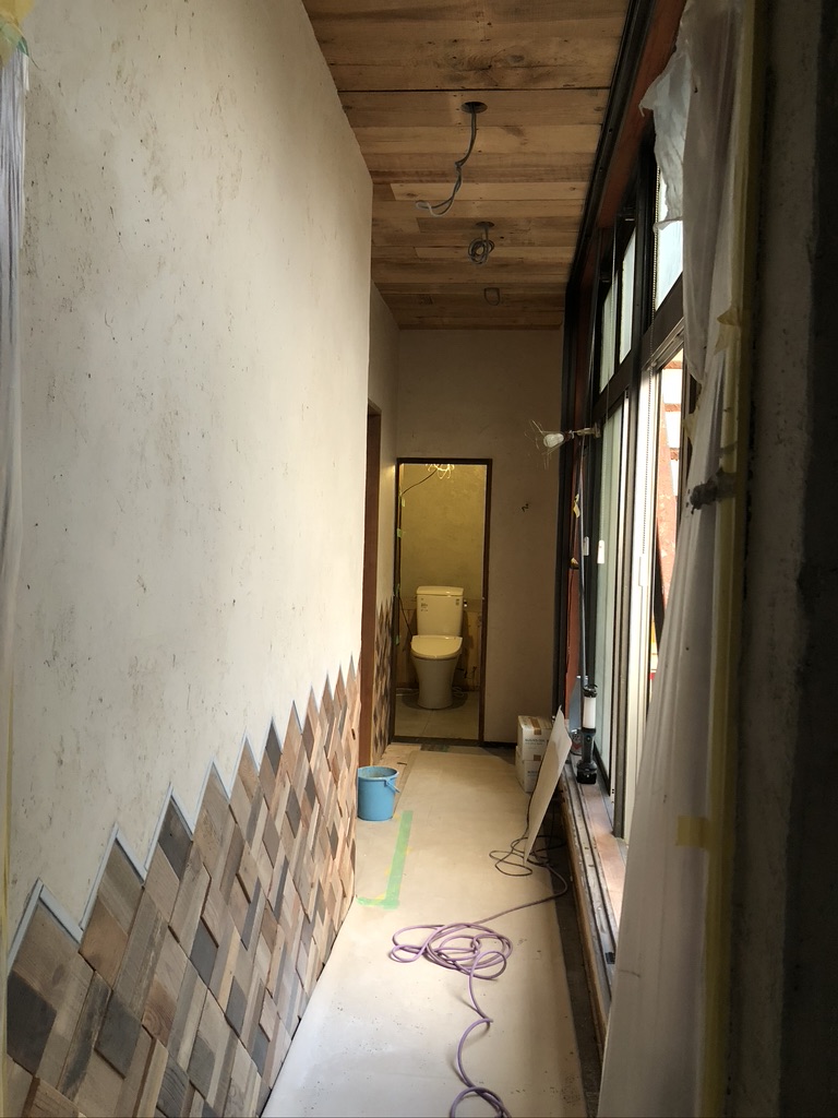 一昨日と昨日で壁の左官を行い、一気に空間が出来上がってきており、改装の仕上げもあと少しのところまで来ました!